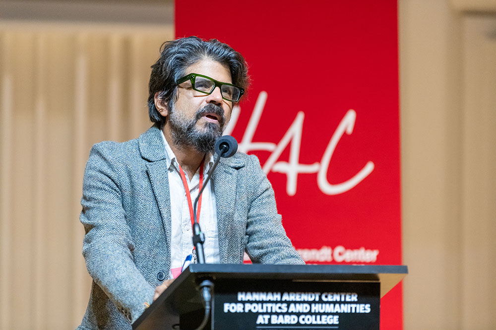 Author Pankaj Mishra gives the keynote address at the HAHN "Rage and Reason" conference. Photo by Karl Rabe.